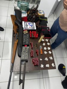 Durante o cumprimento dos mandados, os policiais apreenderam drogas, dinheiro e um verdadeiro arsenal: 14 armas — incluindo oito armas de fogo —, dezenas de munições e acessórios usados na venda de entorpecentes.