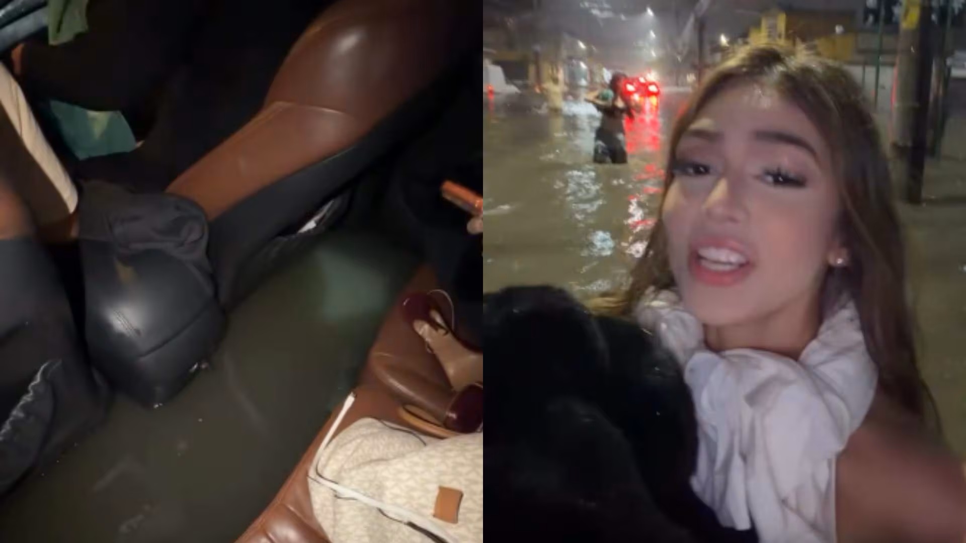 — Gente, olha a situação! O carro ficou ali — disse ela. — O carro encheu de água, tivemos que abandonar o carro. Conhecemos um rapaz [que nos ajudou], e fomos para a casa dele, mas as coisas ficaram no carro.