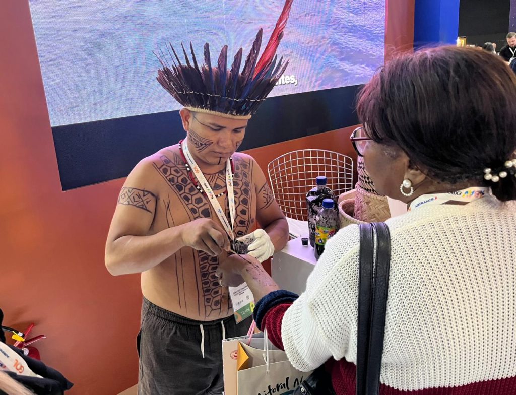 O artesanato indígena do polo Serras Guajajara Timbira Kanela também se destacou. Gemilson Guajajara, de Barra do Corda, levou acessórios confeccionados com materiais naturais e realizou pinturas corporais, proporcionando aos visitantes uma imersão na cultura indígena.
